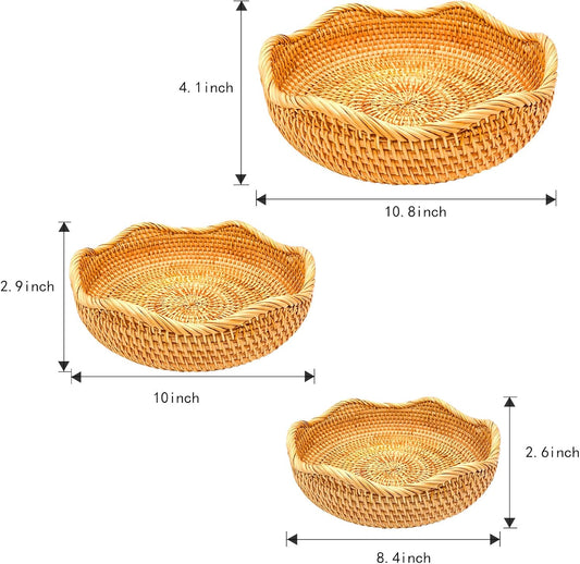 Handwoven Rattan Basket – Tall Round Wicker Storage Bowl for Fruit, Bread & Decorative Display | Eco-Friendly, Rustic Natural Organizer for Kitchen & Home Decor